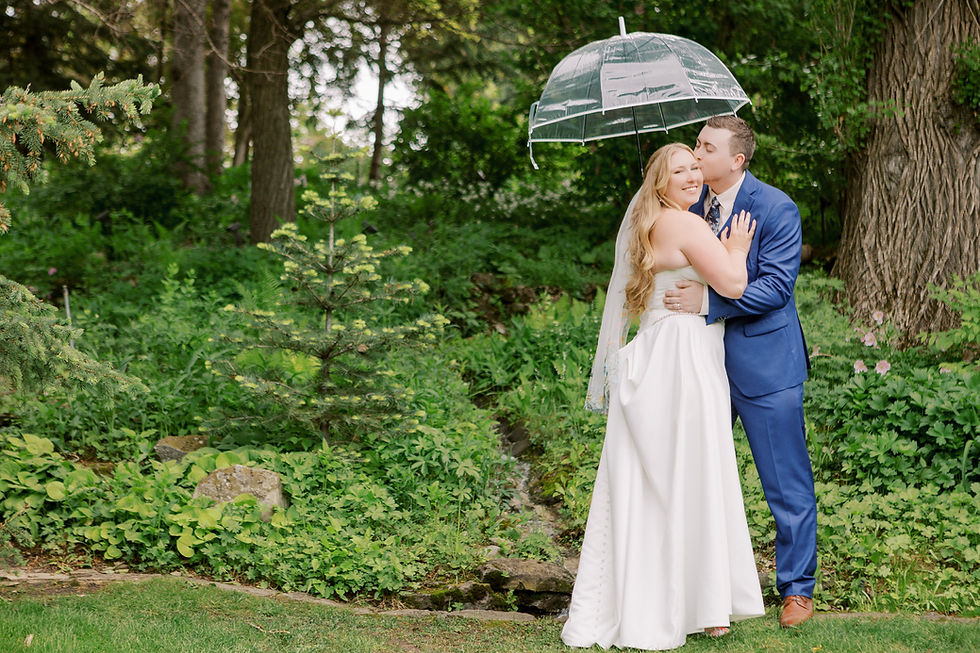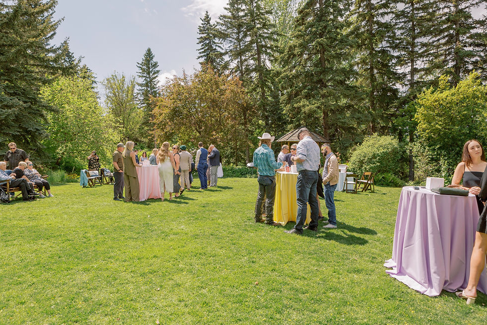 Even a little Calgary rain couldn't dampen the mood. We snuck away for some moody, romantic portraits in the gardens before heading back to the party. The celebration was filled with personal touches, including incredible handmade treats from Bonney Chocolates (the groom’s father’s business!). Guests snapped photos on film cameras, ate Crave cupcakes, and cheered as Natalie tossed her bouquet.